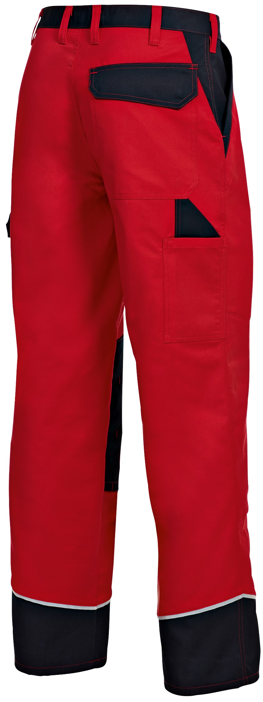 - 2 Seitentaschen, Schenkeltasche mit aufgesetzter Smartphone- und Stifttasche, doppelte Zollstocktasche, 1 mit Patte verschließbare Gesäßtasche, reflektierende Paspeln, Kniepolstertaschen