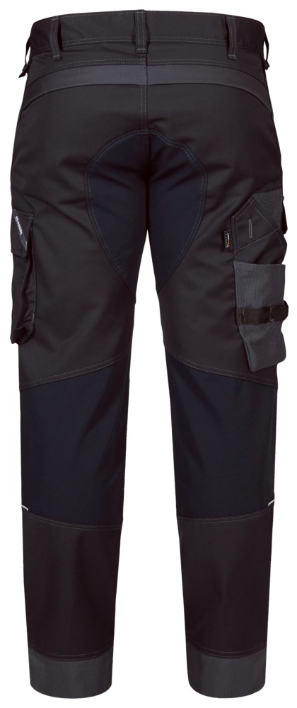 Funktionelle Handwerkerhose mit Stretch und schmaler Passform und vielen praktischen Details. Ergonomisch geformte Knie. Einsätze aus extrem elastischem, atmungsaktivem Stretchmaterial in den Kniekehlen sorgen für noch mehr Tragekomfort. D-Ring vorne z. B. für die ID-Karte. Zwei geräumige, schräg sitzende Einschubtaschen vorne. Zwei Gesäßtaschen mit Patte. Handytasche mit Patte am rechten Oberschenkel. Links sitzt eine Schenkeltasche mit Patte. Die Schenkeltasche besitzt ein zusätzliches Fach mit Reißverschluss. Verstärkte Zollstocktasche mit zusätzlichen Fächern und Werkzeugschlaufen. Schenkeltasche und Zollstocktasche mit freihängendem Boden gewähren optimale Bewegungsfreiheit. Knieverstärkung/Knietasche mit Klettverschluss oben für höhenverstellbare Kniepolster (zwei Einstellmöglichkeiten). Verstärkter Saum der Hosenbeine für extra hohe Verschleißfestigkeit. Gute Sichtbarkeit durch Reflexpaspeln mittig hinten auf den Hosenbeinen. Extra breiter Hosenaufschlag ermöglicht bei Bedarf eine Verlängerung der Schrittlänge. Für die Verlängerung der Schrittlänge ist bloß ein Saum aufzutrennen, dahinter kommt ein zusätzlicher Saum zum Vorschein.