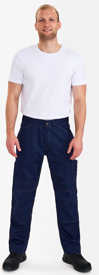 Funktionelle Handwerkerhose mit Kontraststeppnähten. Optimale Passform, ergonomisch geformte Knie. Zwei geräumige, schräg sitzende Einschubtaschen vorne. Zwei Gesäßtaschen mit Patte. Schenkeltasche mit Patte sowie Einschüben für z. B. Stifte. Freihängende, verstärkte Zollstocktasche mit extra Fächern garantiert optimale Bewegungsfreiheit. Verstellbare Hammerschlaufe. Verstärkte Knietaschen mit zwei Einstellmöglichkeiten für Knieschutzkissen. Verstärkter Saum der Hosenbeine für extra hohe Verschleißfestigkeit. Gute Sichtbarkeit durch Reflexpaspeln mittig hinten auf den Hosenbeinen. Die Hose verfügt über einen extra breiten Hosenaufschlag, sodass sich bei Bedarf die Schrittlänge verlängern lässt. Für zusätzliche Beinlänge muss nur ein Saum aufgetrennt werden, dahinter verbirgt sich ein zusätzlicher Saum.