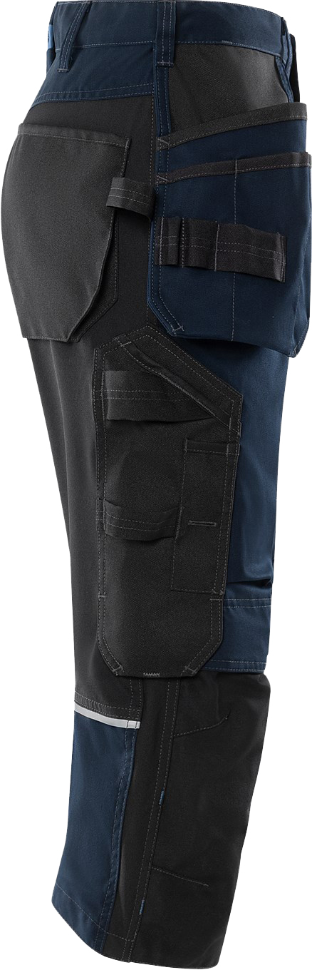 Handwerker-3/4-Hose mit Einsätzen aus 4-Wege-Stretchmaterial. Aus leichtem und strapazierfähigem Material mit mechanischem Stretch, teilweise aus recyceltem Polyester. Bequeme Arbeitshose mit allen notwendigen Funktionen und Merkmalen. Konzept: Alnaryd