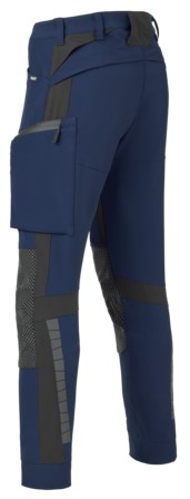 Arbeitshose aus strapazierfähigem Material. Schwarze Designer-Reflexe, 4-Wege-Stretch und vorgeformte Beine.
