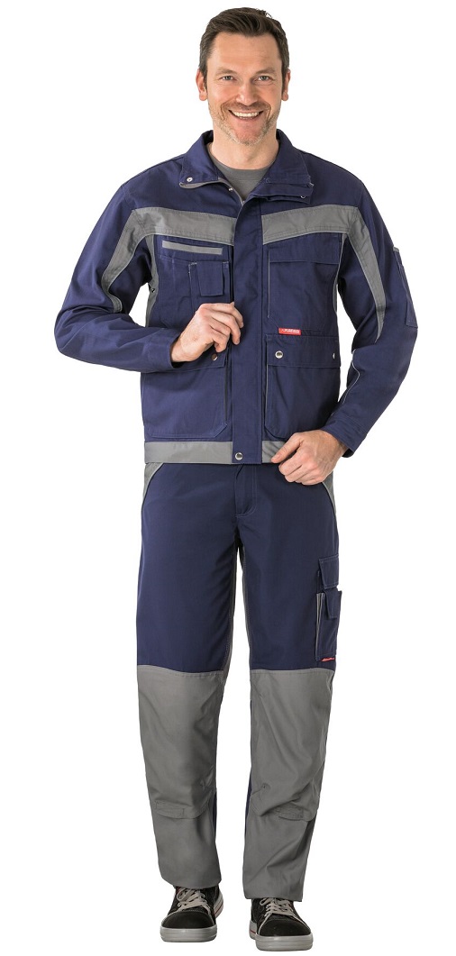 2 aufgesetzte Seitentaschen mit Patte und Druckknöpfen, 1 Brusttasche links mit Patte und Klettverschluss, doppelte Brusttasche rechts, Handytasche auf der rechten Brust, 2 Stiftfächer, mit Druckknopf verstellbare Ärmelbündchen, verdeckter Frontreißverschluss, Stehkragen, Bundweite mit Klettband verstellbar,Ärmeltasche links, Reflexbiesen als Sicherheitsausstattung, 2 Golffalten im Rücken, Lüftungsschlitz im Rücken.