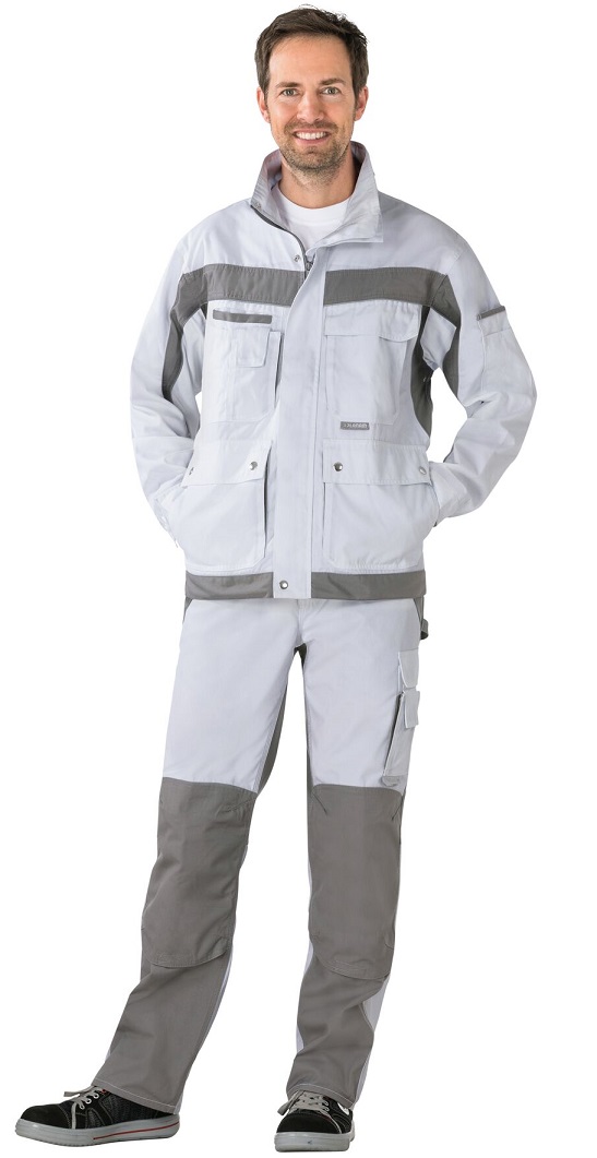 2 aufgesetzte Seitentaschen mit Patte und Druckknöpfen, 1 Brusttasche links mit Patte und Klettverschluss, doppelte Brusttasche rechts, Handytasche auf der rechten Brust, 2 Stiftfächer, mit Druckknopf verstellbare Ärmelbündchen, verdeckter Frontreißverschluss, Stehkragen, Bundweite mit Klettband verstellbar,Ärmeltasche links, Reflexbiesen als Sicherheitsausstattung, 2 Golffalten im Rücken, Lüftungsschlitz im Rücken.