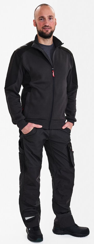 Funktioneller und angenehm zu tragender Cardigan aus Jersey, innen mit geklebtem Fleece. Frontreißverschluss. Zwei große Einschubtaschen mit Reißverschluss. Gerippter Kragen und Strickbündchen an Bund und Ärmeln. Gute Sichtbarkeit durch Reflexapplikationen auf den Schultern.