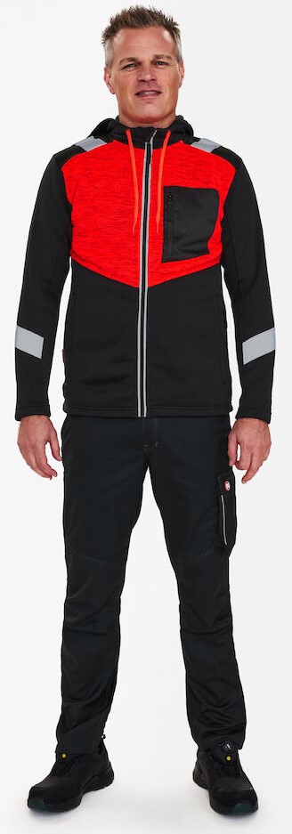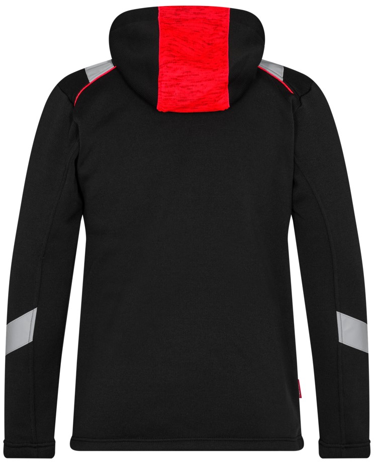 Cardigan aus weichem Strickstoff mit Fleece auf der Rückseite. Reißverschluss mit Reflex an der Vorderseite. Zwei geräumige Einschubtaschen und Brusttasche, alle mit Reißverschluss. Kapuze mit Schnüren. Reflexdetails für erhöhte Sichtbarkeit.