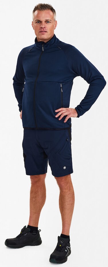 Bequemer Midlayer-Cardigan aus leichtem, dehnbarem Material. Weicher Fleece auf der Innenseite und Ärmel-/Seiteneinsätze aus schweißabsorbierendem Material sorgen für mehr Komfort. Reißverschluss vorne. Viele funktionelle Taschen – wobei die Außentaschen mit einem Reißverschluss geschlossen werden. Zwei Innentaschen. Mit elastischem Bund am Saum unten und an den Ärmelenden. Reflexpaspeln an den Schultern vorne und hinten für bessere Sichtbarkeit.