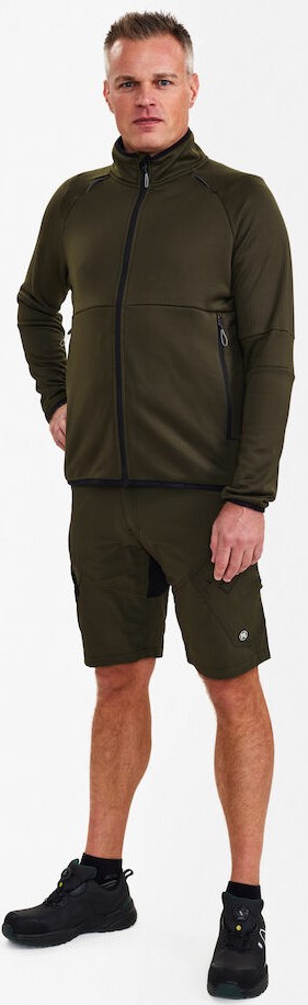Bequemer Midlayer-Cardigan aus leichtem, dehnbarem Material. Weicher Fleece auf der Innenseite und Ärmel-/Seiteneinsätze aus schweißabsorbierendem Material sorgen für mehr Komfort. Reißverschluss vorne. Viele funktionelle Taschen – wobei die Außentaschen mit einem Reißverschluss geschlossen werden. Zwei Innentaschen. Mit elastischem Bund am Saum unten und an den Ärmelenden. Reflexpaspeln an den Schultern vorne und hinten für bessere Sichtbarkeit.