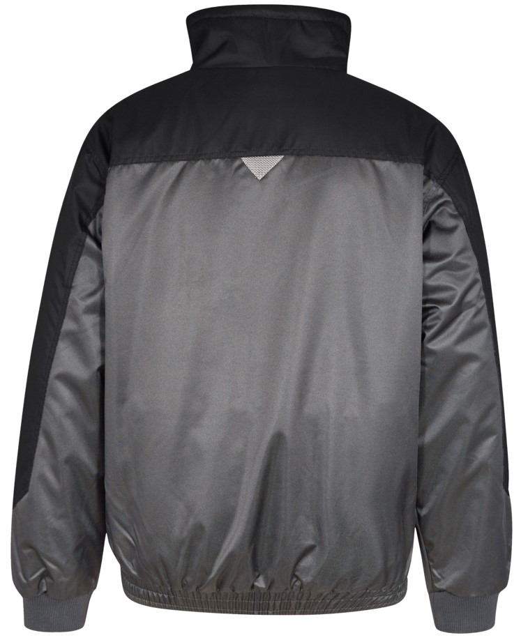 Zweifarbige Pilotjacke mit doppelt verdecktem Kunststoffreißverschluss in passendem Farbdesign. Schultern und Ärmel verstärkt. Dunkel gefärbte Druckknöpfe. Brusttasche links mit seitlichem Eingriff mit Reißverschluss. Offene Brusttasche mit verschließbarer Handytasche rechts. Zwei Eingrifftaschen. Innentasche mit Reißverschluss. Strickbündchen an den Ärmeln. Elastischer Bund. Kragen mit Schnurstopper verstellbar. Faserpelz im Kragen und am Körper. Reißverschluss im hinteren, unteren Rückenbereich, um die Jacke für Transfers oder Embleme leichter handhaben zu können. Wind- und wasserabweisendes Material.