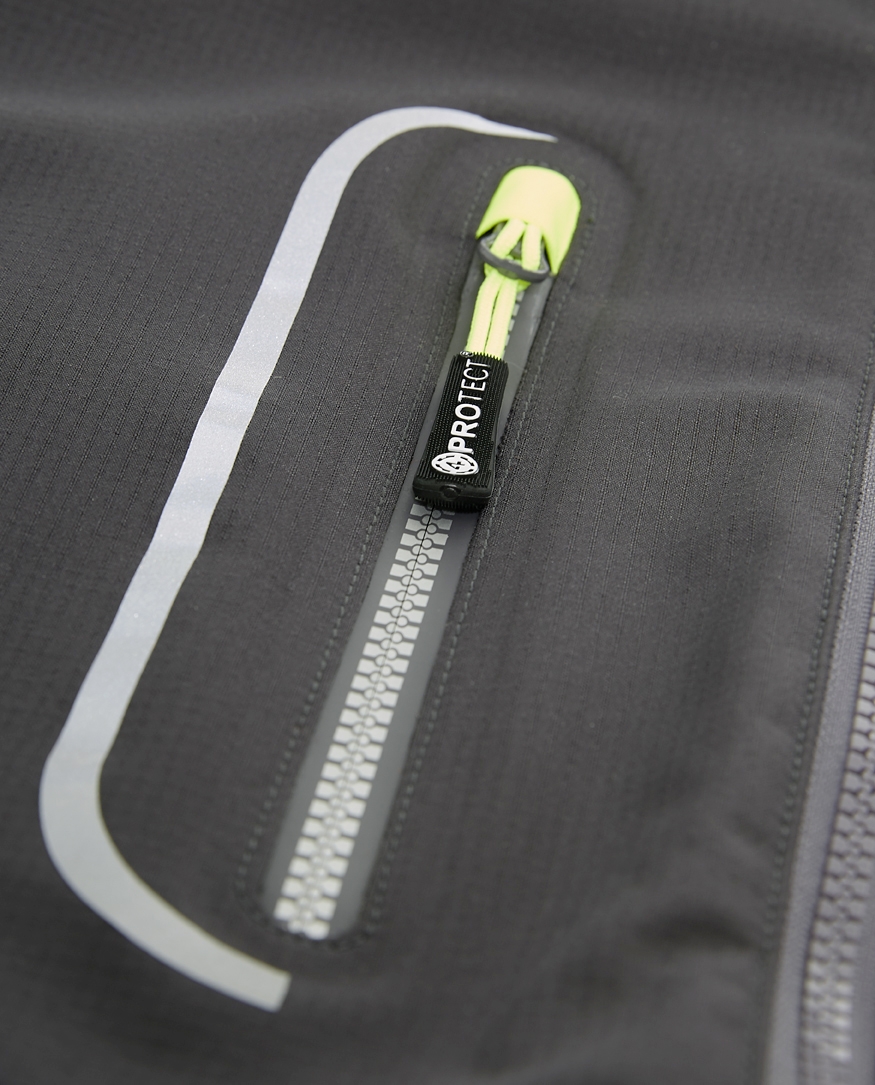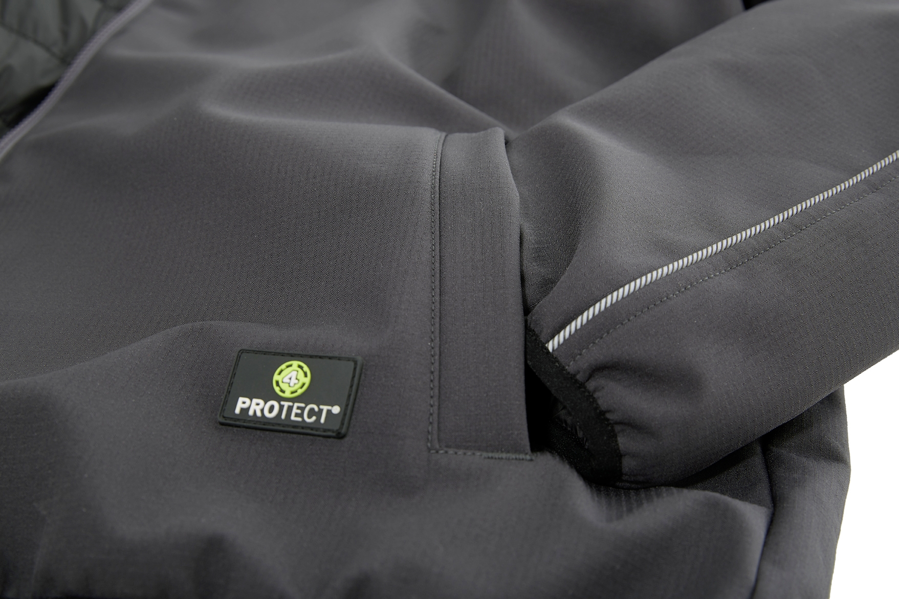 - Obermaterial: 100% Polyester (Ripstop-Softshell)