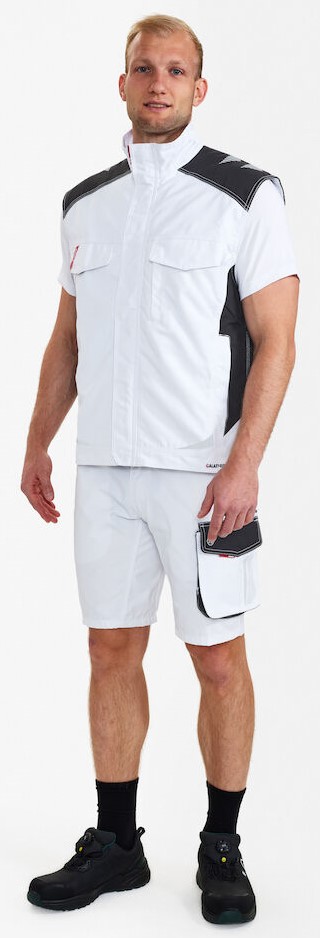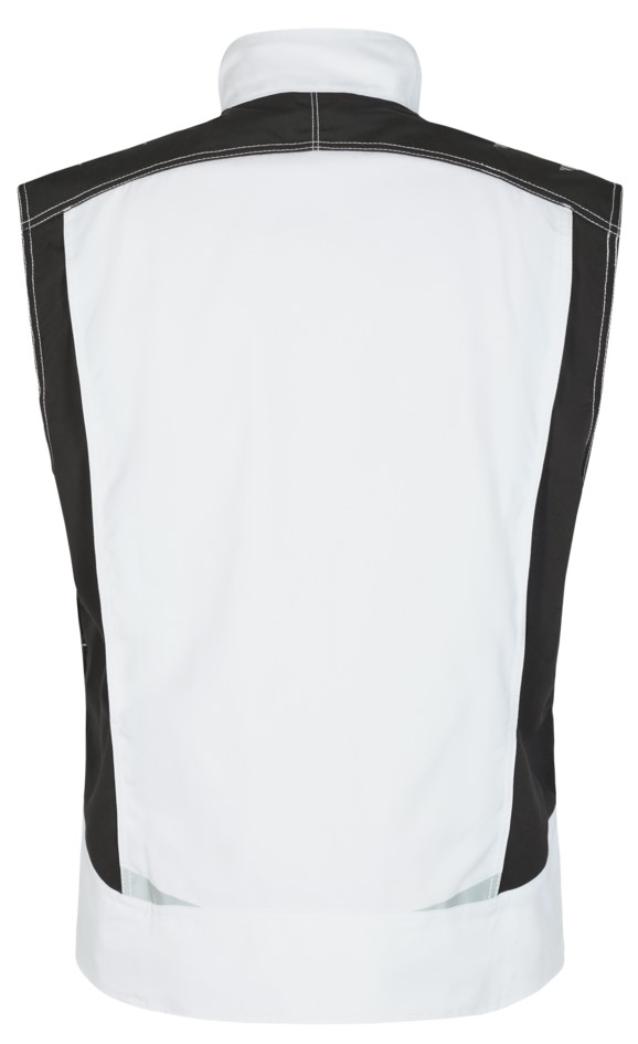 Funktionelle Serviceweste mit vielen Details. Verlängerte Rückenpartie mit Bewegungsfalte. Verdeckter Reißverschluss vorn Zwei geräumige Einschubtaschen. Zwei Brusttasche mit Patte – die rechte mit Schlaufe und D-Ring zur Befestigung einer ID-Karte, die linke mit zusätzlicher Reißverschlusstasche fürs Handy. Zwei große Innentaschen mit Klettverschluss. Reflexstreifen auf den Schultern sowie vorne und hinten für mehr Sichtbarkeit. Für Industriewäsche geeignet.
