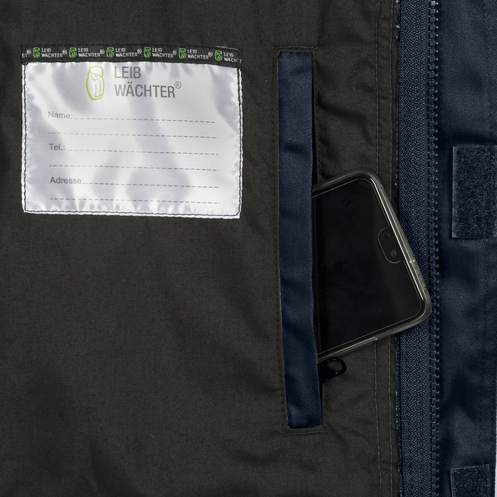 - Linke Innenbrusttasche mit Namensschild