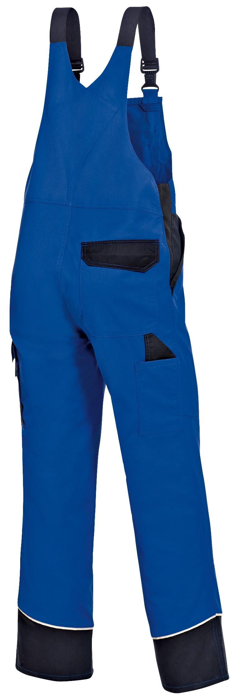 - hochgezogener Rücken, doppelte Zollstocktasche, 1 mit Patte verschließbare Gesäßtasche, reflektierende Paspeln, Kniepolstertaschen
