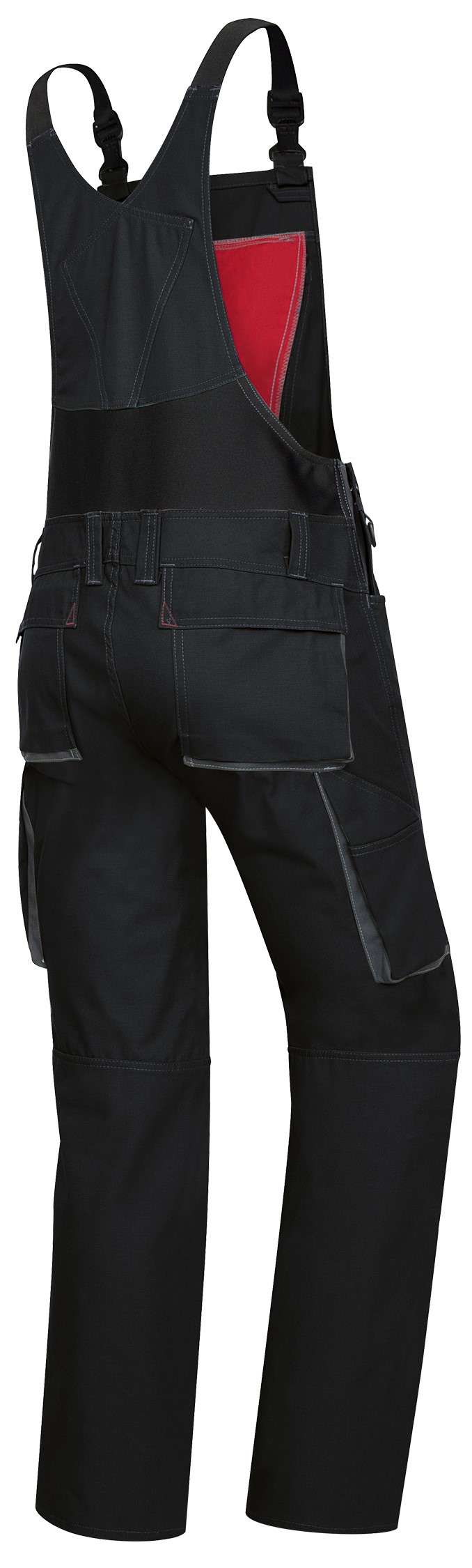 - Stretchträger mit Kunststoff-Steckschnallen, doppelte Latztasche mit Reißverschluss und Taschenklappe, 2 Stifttaschen, hochgezogener Rücken mit Stretcheinsatz für mehr Bewegungsfreiheit, regulierbare Bundweite