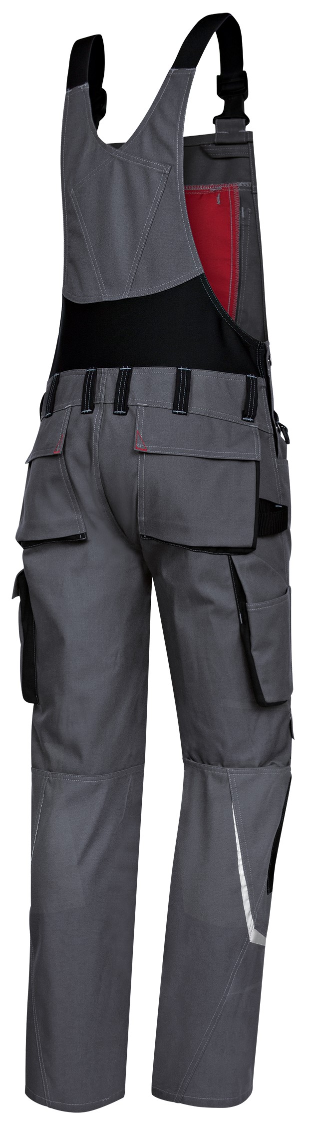 - Stretchträger mit Kunststoff-Steckschnallen, doppelte Latztasche mit Reißverschluss und Taschenklappe, 2 Stifttaschen, hochgezogener Rücken mit Stretcheinsatz für mehr Bewegungsfreiheit, regulierbare Bundweite