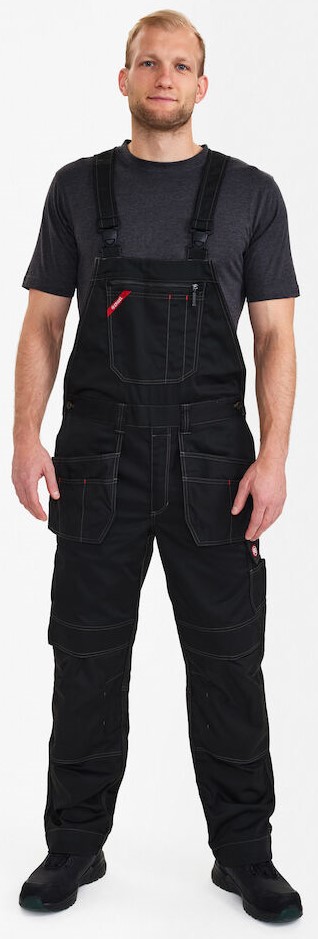 Funktionelle Latzhose mit Kontraststeppnähten. Hochgeschnittener Rückenbereich mit breitem Gummizug und verstellbaren Trägern. Brusttasche mit Fächern für Stifte sowie Brusttasche mit Reißverschluss. Optimale Passform, ergonomisch geformte Knie. Verstellbare Bundweite. Zwei geräumige, schräg sitzende. Einschubtaschen sowie zwei Holstertaschen vorne. Zwei Gesäßtaschen mit Patte. Schenkeltasche mit Patte sowie Einschüben für z. B. Stifte. Freihängende, verstärkte Zollstocktasche mit extra Fächern garantiert optimale Bewegungsfreiheit. Einstellbare Hammerschlaufe. Verstärkte Knietasche mit zwei Einstellmöglichkeiten für Knieschutzkissen. Verstärkter Saum der Hosenbeine für extra hohe Verschleißfestigkeit. Gute Sichtbarkeit durch Reflexpaspeln mittig hinten auf den Hosenbeinen. Die Hosenbeine verfügen über einen extra breiten Hosenaufschlag, sodass sich bei Bedarf die Schrittlänge verlängern lässt. Für extra lange Beinlänge bloß einen Saum öffnen, dahinter verbirgt sich ein zusätzlicher Saum.