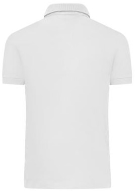 - Gestrickter, mit Webstoff unterlegter Polokragen
