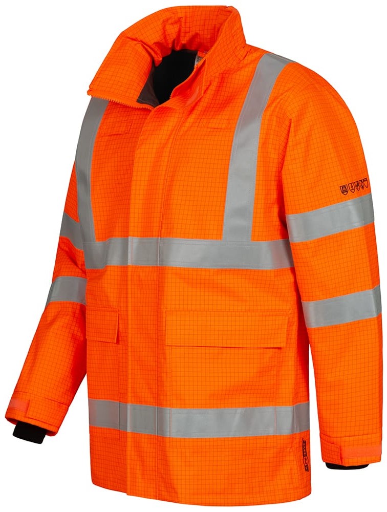 - Die Jacke ist von außen als Multinorm- Schutzbekleidung erkennbar durch das Multinorm-Emblem auf dem linken Oberarm