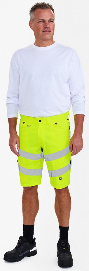 Dehnbare, funktionelle und fluoreszierende Shorts im modernen Design. Optimale Passform. Der dehnbare Stoff sorgt für optimale Bewegungsfreiheit und Komfort. D-Ring vorne für die Befestigung von z. B. Ausweisen. Zwei geräumige Schrägtaschen vorne. Zwei Gesäßtaschen. Zwei Schenkeltaschen mit Reißverschluss. Die linke Schenkeltasche hat eine zusätzliche Handytasche. Die rechte Schenkeltasche hat eine aufgesetzte verstärkte Zollstocktasche mit zusätzlichen Unterteilungen. Bekleidungsklasse 1. Nach 50 mal Waschen getestet.