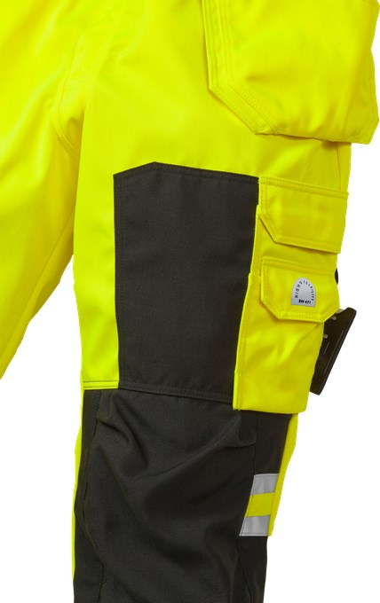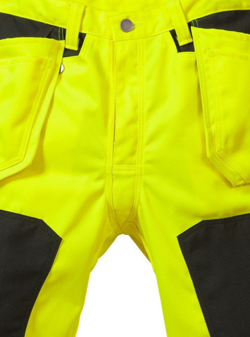 Warnschutz-Handwerkerhose aus schmutz-, öl- und wasserabweisendem Material mit weicher Baumwolle innen und CORDURA®-Verstärkungen an besonders beanspruchten Stellen.