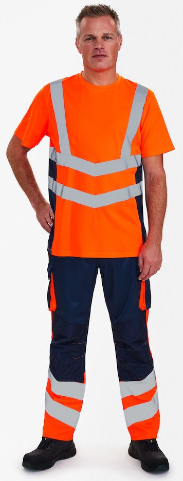 Bequemes und schickes T-Shirt mit Warnschutzfunktion im modernen Design. Das T-Shirt besteht aus bequemem Pikee-Stoff mit Baumwolle auf der Innenseite für mehr Komfort. Rippstrick am Halsausschnitt. Reflexstreifen über die Schulterpartie hinweg sowie rund um die Taille. Bekleidungsklasse 2. Nach 25 mal Waschen getestet.