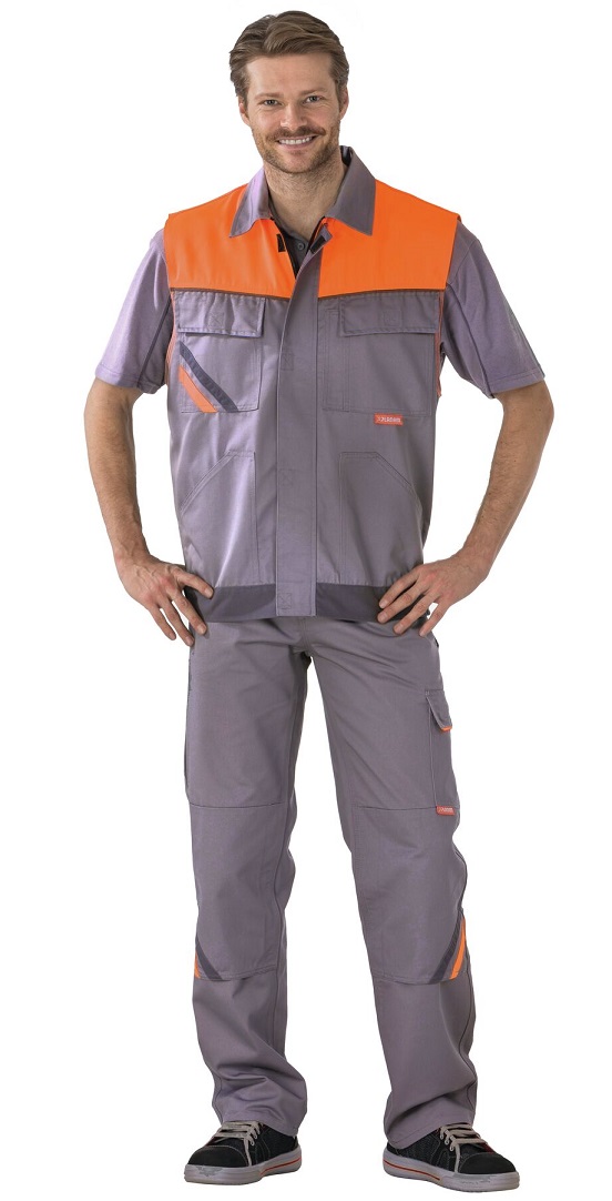 - Kontrastfarbe warnorange/warngelb: 85 % Polyester, 15 % Baumwolle
