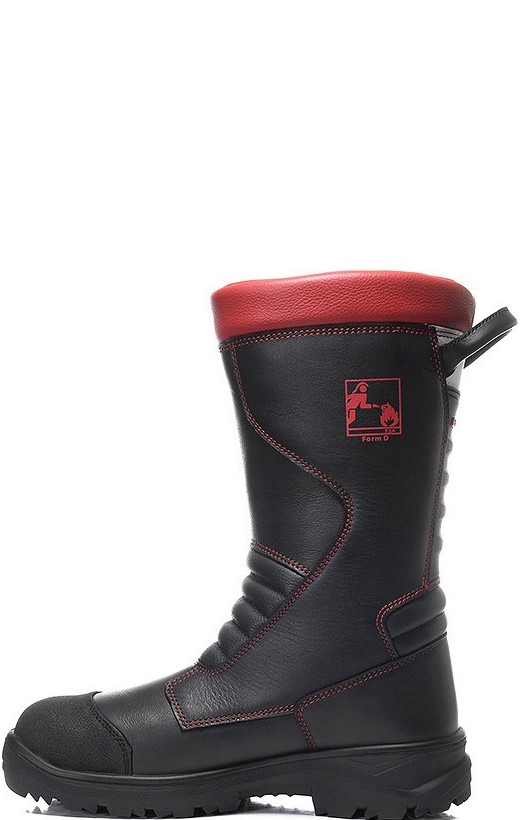 Egal bei welchem Einsatz – mit dem Feuerwehrstiefel CLAY F2A von Elten braucht man sich keine Sorgen machen. Er behauptet sich durch sein feuerresistentes Rindleder, dessen Nähte aus hitzebeständigem Nomex® Garn bestehen. Der Schlupfstiefel mit der besonders rutschhemmenden, grobstolligen, SRC zertifizierten GUMMI/PU Sohle hält enormer Hitze 40 Minuten lang bei 250 Grad Celsius (HI3) stand. Zudem verfügt er über einen abriebfesten Spitzenschutz. Ebenso zur Standardausstattung gehören die Stahlkappe sowie eine durchtritthemmende Zwischensohle aus Stahl. Die Sohle der fünf neuen Modelle der Fire-Reihe ist auf einem neuen Leisten entwickelt worden – für eine komfortable und ergonomische Passform. Dadurch kann sich der Träger auf viel Platz im Vorfußbereich freuen. Das atmungsaktive Textilfutter inklusive Knöchelpolster und komfortablen Flexzonen machen das Tragegefühl des Schuhs einzigartig. Für bessere Sichtbarkeit ist an den Seiten Reflexmaterial angebracht.