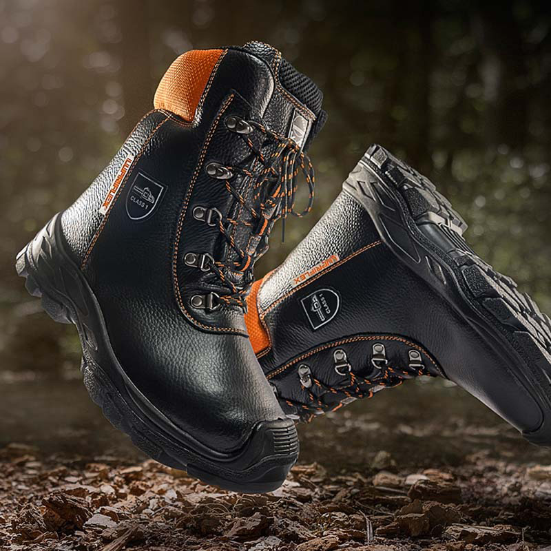 - Durchtrittsicherer Sicherheitsstiefel mit Schutz gegen Kettensägenschnitte