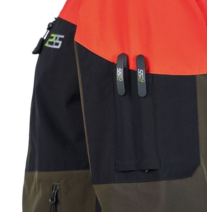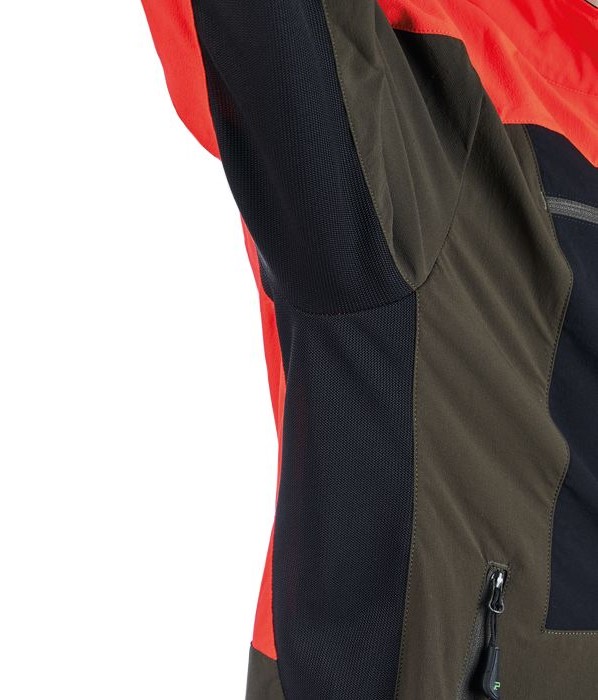 Da uns der Klimawandel dazu zwingt, die Waldarbeit auch in wärmeren Jahreszeiten zu bewältigen, treten wir mit unserer neuen X-treme Breeze Jacke dem entgegen. Denn das intelligente “Nilit Breeze“ Garn sorgt bei zunehmender Temperatur dafür, dass die Körpertemperatur um bis zu 2 C° gesenkt wird. Durch den permanenten Ventilationseffekt wird ein Wärmestau verhindert. Durch die Verwendung von Elasthan und Polyamid haben wir hier eine Mischung, die hohe Robustheit, Atmungsaktivität und viel Bewegungsfreiheit garantiert. Zusätzlich ist mit den NetzfutterEinsätzen unter den Armen, sowie im oberen Rückenbereich für eine gute Durchlüftung gesorgt.