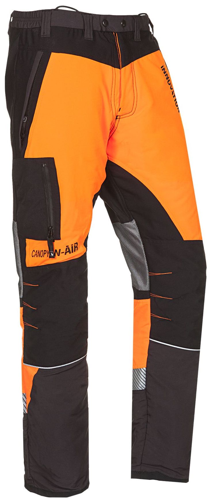 Die für Baumpfleger entwickelte Canopy W-AIR-Schnittschutzhose vereint die Hauptmerkmale der W-AIR-Linie im Innovation-Programm, einen großen Belüftungsbereich auf Basis eines Netzgewebes, ihre neue Passform, und die Einführung einer elastischen 4-Wege-Texxion - System für eine optimale Bewegungsfreiheit. Sie ist in verschiedenen Schrittlängen erhältlich: kurz, standard (Schrittlänge 82 cm) oder lang (88 cm). Zudem sorgen weitere Merkmale, wie die Gamasche im Unterbein und die wasserdichten Pezaflex Aqua- (Cordura®) Kniestücke dafür, dass die Canopy W-Air Hose immer die erste Wahl für Baumpfleger darstellt. Und das alles bei einem Gewicht von nur circa 1100g in Größe M!
