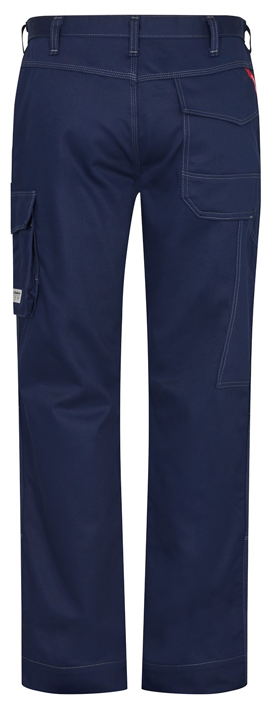 Flammhemmende Hose mit Einschubtaschen. Verstärkte Gesäßtasche mit Patte. Zollstocktasche mit Patte. Geräumige Schenkeltasche. Darüber hinaus freihängende Schenkeltasche für mehr Bewegungsfreiheit. Knieverstärkung/Knietasche mit Klettverschluss unten sowie zwei Einstellmöglichkeiten für Knieschutzkissen. Für Industriewäsche geeignet.