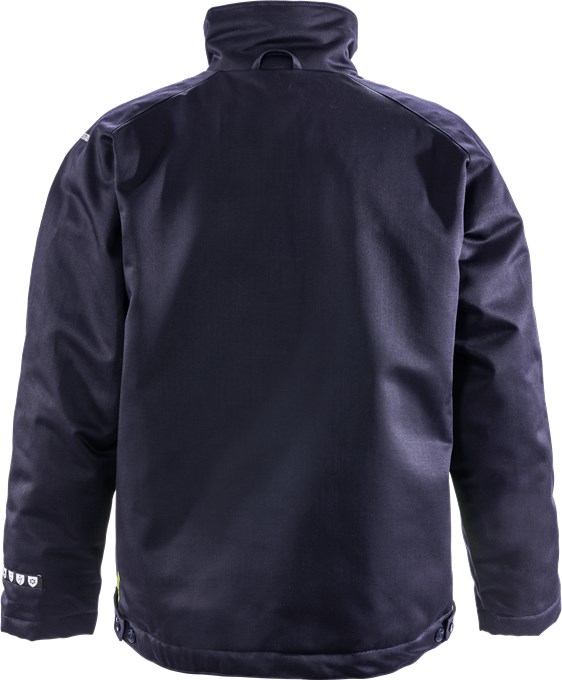 Flammschutz-Winterjacke aus strapazierfähigem robustem Material, wasserabweisend und mit hohem Tragekomfort. Geeignet für Industriewäsche.