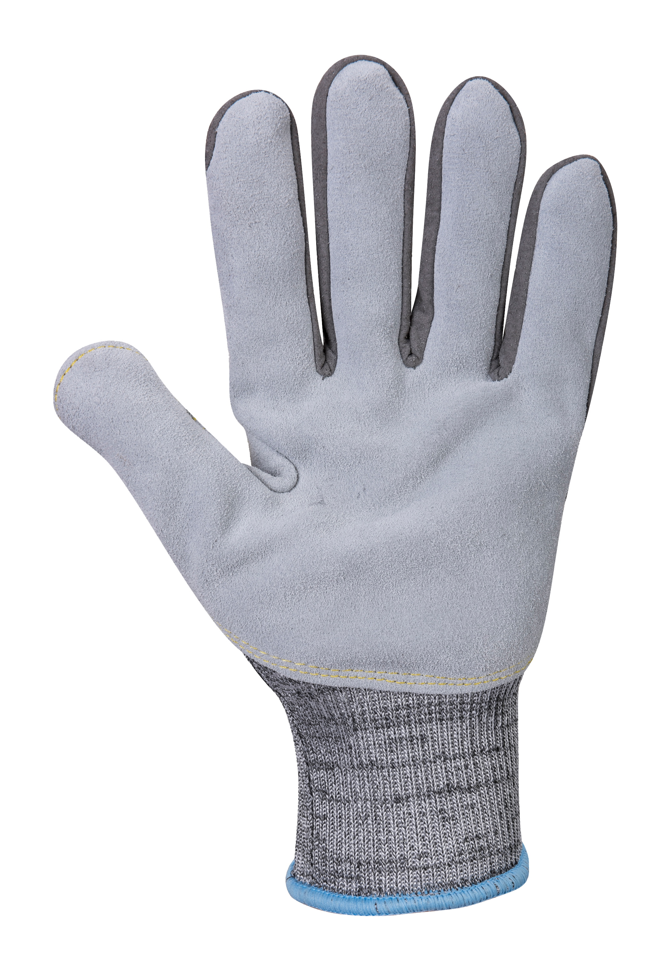 Schnittschutzhandschuh Level 5 mit Lederbesatz an der Handfläche für besseren Grip, Abriebfestigkeit und Tragedauer. Ideal im Umgang mit Glas.