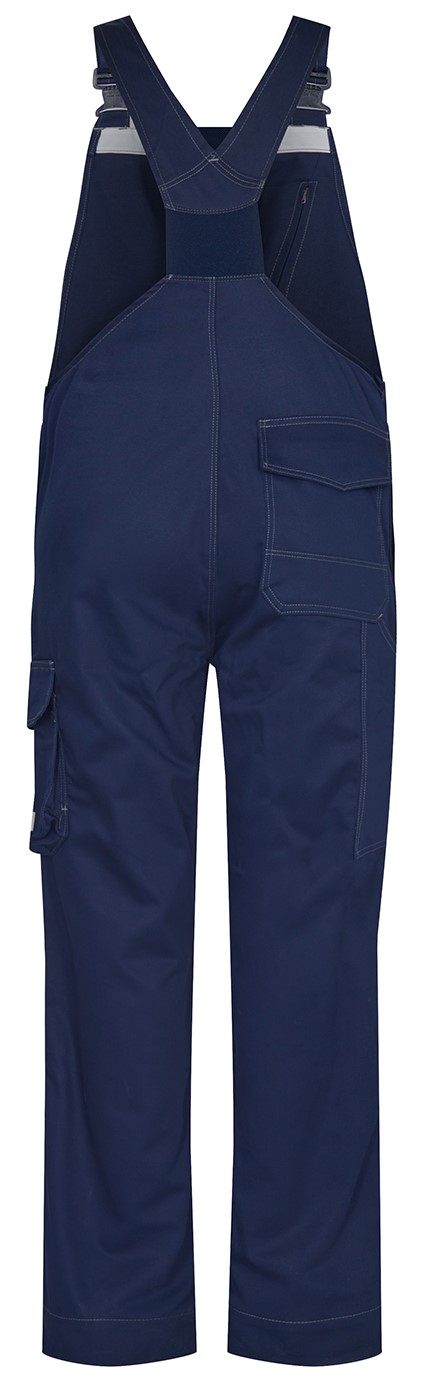 Flammhemmende Latzhose mit Brusttasche mit Patte. Verstellbare Träger. Elastisches Rückenteil. Seitliche Einschubtaschen. Verstärkte Gesäßtasche mit Patte. Zollstocktasche mit Patte. Geräumige Schenkeltasche. Darüber hinaus freihängende Schenkeltasche für mehr Bewegungsfreiheit. Knieverstärkung/Knietasche mit Klettverschluss unten sowie zwei Einstellmöglichkeiten für Knieschutzkissen. Für Industriewäsche geeignet.