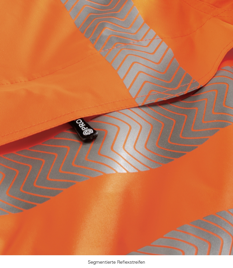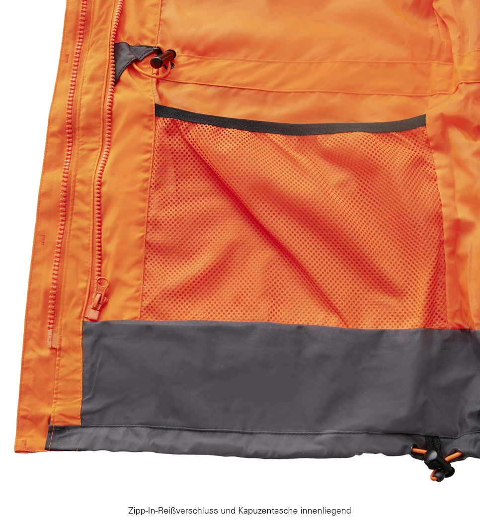 - Normen: EN ISO 20471 Klasse 2, EN 343 (3.4), EN ISO 13688