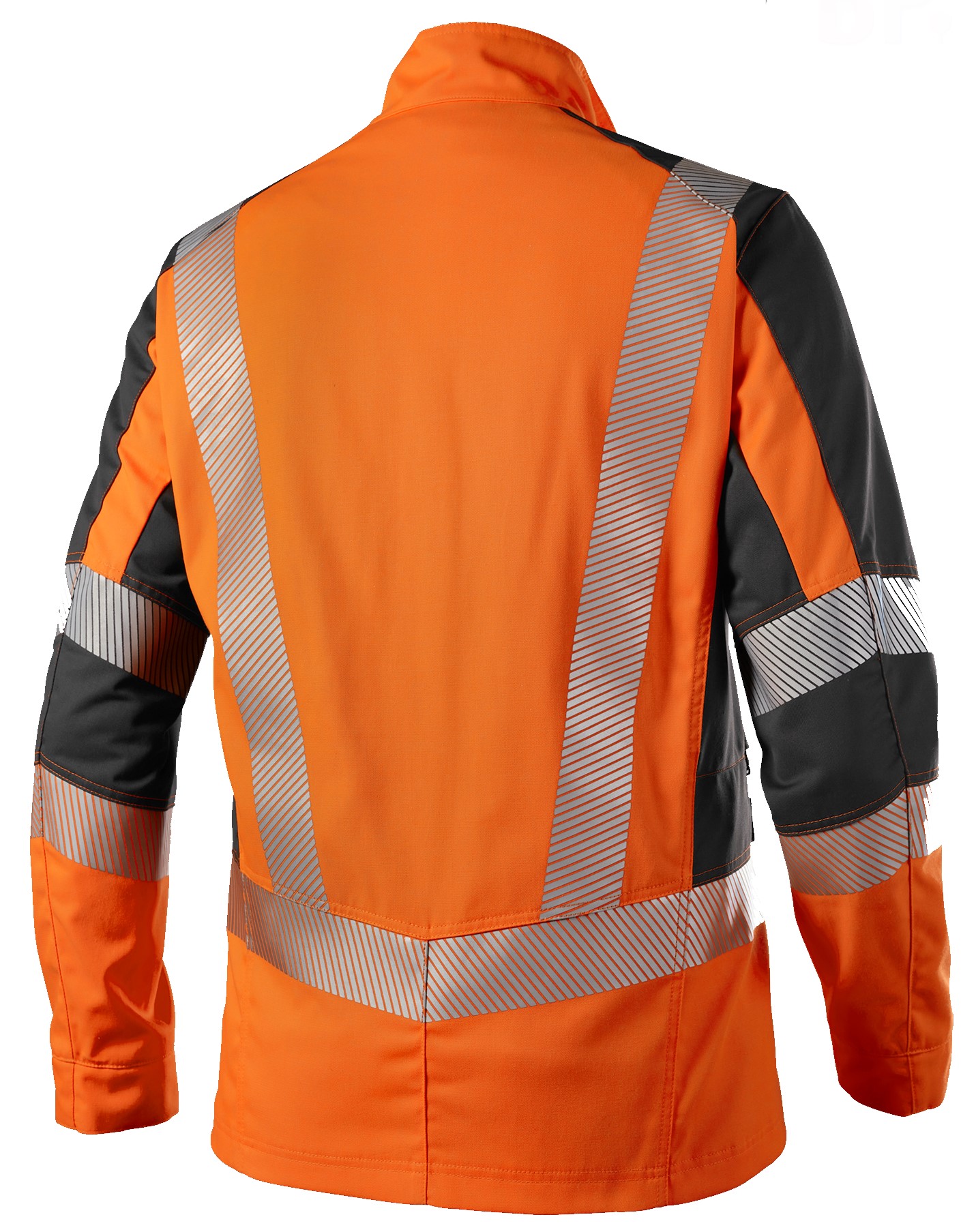 - je 2 Reflexstreifen auf dem Ärmel, 1 umlaufender Reflexstreifen oberhalb des Saumes, je 2 umlaufende vertikale Reflexstreifen vorne und hinten