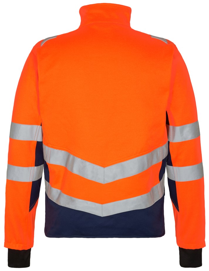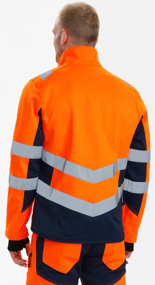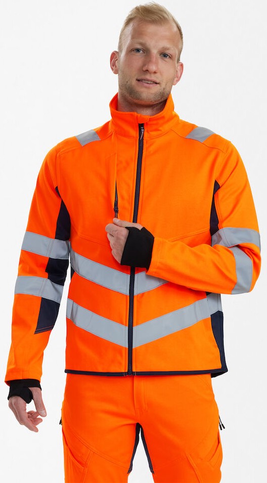 Dehnbare und funktionelle fluoreszierende Arbeitsjacke im modernen Design. Die Jacke hat einen hohen Kragen und ist hinten länger geschnitten. Der dehnbare Stoff bietet viel Komfort und Bewegungsfreiheit. Reißverschluss vorne. Zwei geräumige Seitentaschen sowie eine Brusttasche, jeweils mit Reißverschluss. Zusätzlicher Windfang aus Rippstrick an den Ärmeln. Der Windfang mit Daumenloch kann zum Schutz vor Kälte über die Hand gezogen werden. Reflexstreifen über die Schulterpartie hinweg sowie rund um Ärmel und Taille. Bekleidungsklasse 2. Nach 50 mal Waschen getestet.