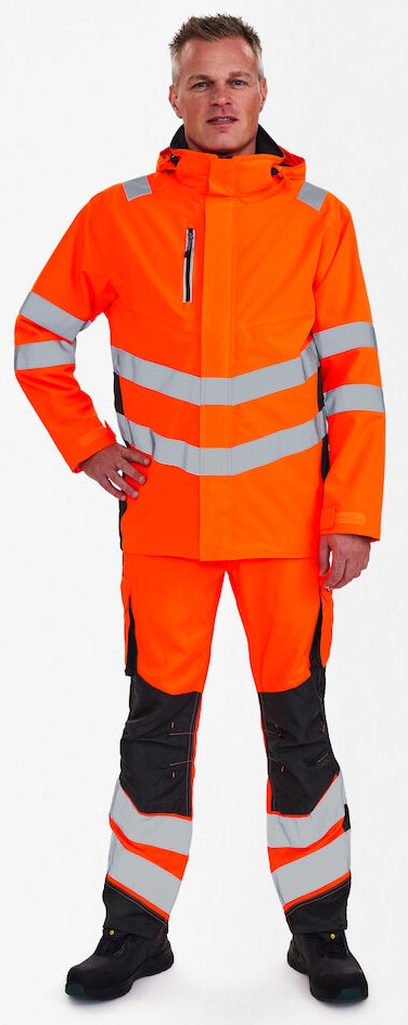 Fluoreszierender, atmungsaktiver sowie wasser- und winddichter Shellparka mit modernem Schnitt und verschweißten Nähten. Der Parka hat einen hohen Kragen, doppelte Knopfleiste mit Reißverschluss sowie Klettverschluss vorne. Kombinierbar mit den Modellen 1192-236, 1159-158 und 5159-158, die alle Zip-in-Details haben. Zwei geräumige Seitentaschen und Brusttasche mit Reißverschluss sowie große Innentaschen mit Klettverschluss. Abnehmbare, verstellbare Kapuze mit ausreichend Platz für den Arbeitshelm. Verstellbare Manschetten. Reißverschluss im Futter, der sich für Aufdruck eignet. Reflexstreifen über der Schulterpartie sowie rund um Ärmel und Taille. Bekleidungsklasse 3. Getestet nach 50 Wäschen.