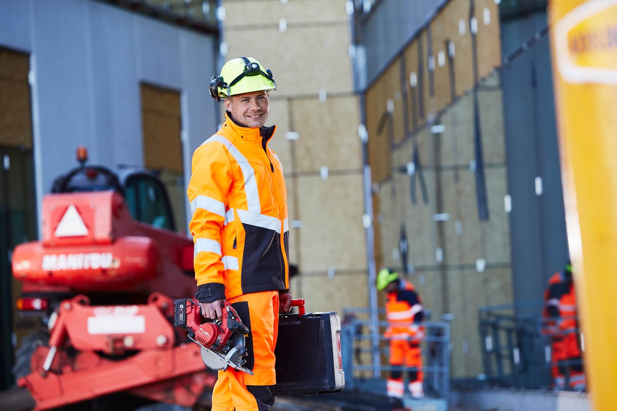 - Fluoreszierend und mit Reflexschulterstreifen sowie schräg verlaufenden Reflexen