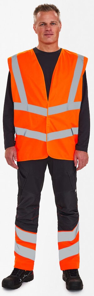 Leichte, bequeme Verkehrsweste mit Klettverschluss. Reflexstreifen am Torso und über den Schultern. Bekleidungsklasse 2. Nach 25 mal Waschen getestet.