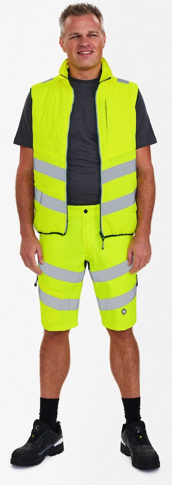 Warme, fluoreszierende Weste im modernen Design mit wind- und wasserabweisenden Eigenschaften. Die Weste kann mit den Modellen 1146-930 kombiniert werden, die einen Reißverschluss zum Einzippen haben. Reflektierender Reißverschluss vorne. Zwei Seitentaschen sowie Brusttasche mit Reißverschluss. Die Weste hat unten und am Armloch ein elastisches Bündchen. Reflexstreifen über die Schulterpartie hinweg sowie rund um die Taille. Bekleidungsklasse 1. Nach 50 mal Waschen getestet.
