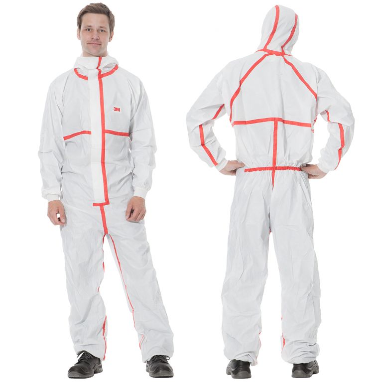 Gefertigt aus einem speziell entwickelten Laminat ist der Schutzanzug 4565 gegenüber Permeation von Chemikalien besonders geeignet. Die Nähte sind mit einem roten Abklebeband versiegelt wodurch erhöhter Schutz gegen feine Partikel und Flüssigkeiten nach CE Typ 4/5/6 geboten wird. Zusätzlich schützt der 3M Schutzanzug 4565 vor biologischen und infektiösen Einflüssen nach EN 14126.Neben seinen schützenden Eigenschaften zeichnet sich der Schutzanzug auch durch seinen angenehmen Tragekomfort aus. Elastische Einsätze an der Hüfte und an den Knöcheln sorgen für einen passgenauen Sitz. Gestrickte Bündchen erhöhen das angenehme Tragegefühl und die dreiteilige Kapuze bietet eine besondere Kompatibilität mit 3M Augen- und Atemschutz. Sonstige Vorteile sind der Zwei-Wege-Reißverschluss mit abklebbarer Patte für zusätzlichen Schutz, der abklebbare Kinnschutz sowie die Vakuumverpackung für eine platzsparende Lagerung.