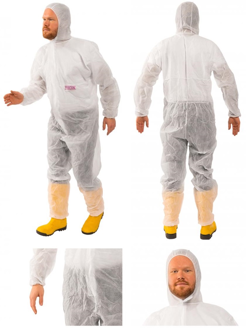 Der Econ Einwegschutzanzug schützt Sie in vielen Anwendungsbereichen vor Schmutz und eignet sich ausgezeichnet für Malerarbeiten, Qualitätskontrollen in der Lebensmittelindustrie, als Besucheroverall, bei Entrümpelungen, Arbeiten mit Dämm- und Baustoffen oder beim Heimwerken.