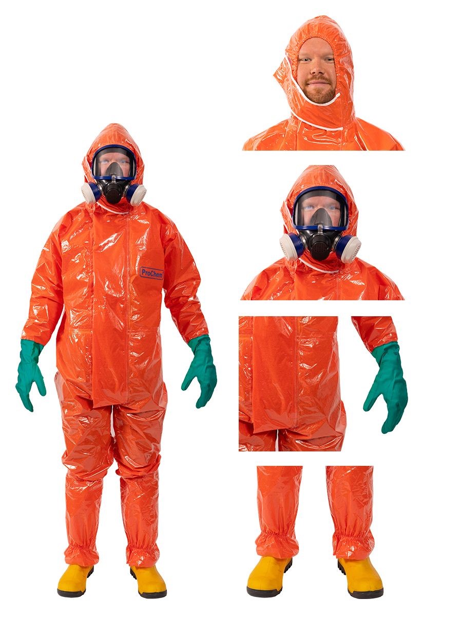 Der ProChem® I wird vornehmlich in der Industrie- und Tankreinigung, bei Inspektionsarbeiten und bei Einsätzen von Feuerwehren und Rettungskräften verwendet. Gummizüge an Ärmeln, Beinen und Kapuze sowie ein Taillengummi sorgen für eine optimale Passform und der großzügig geschnittene Schrittbereich für optimale Bewegungsfreiheit. Die ergonomische Kapuze und die erhöhte doppelte Abdeckblende mit Klettverschluss über dem Reißverschluss bis zum Kinn bieten zusätzlichen Schutz. Elastische Daumenschlaufen verhindern das Hochrutschen der Ärmel bei Überkopfarbeiten.