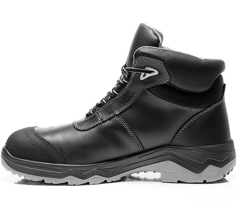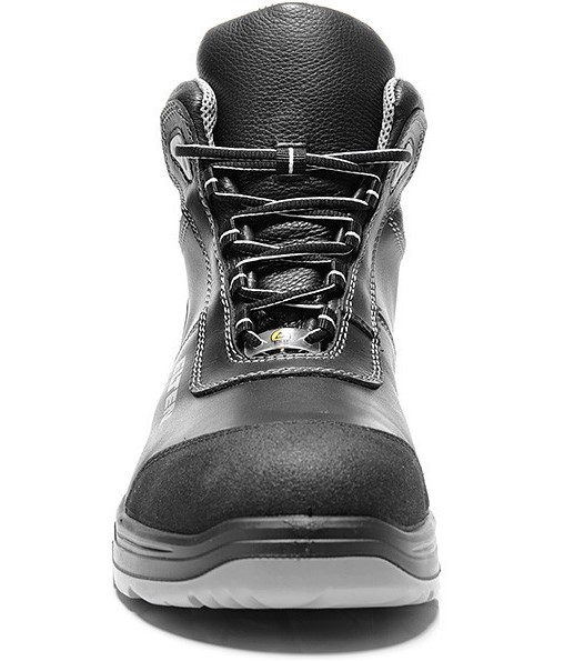 LEROY Mid ESD S2 ist ein Sicherheitsstiefel aus der ELTEN NEW CLASSICS Serie, ESD-fähig und erhältlich in den Größen 38 bis 48. Robuste Materialien und solide Machart zeichnen ihn aus: Das strapazierfähige Rindleder ist sehr widerstandsfähig, und der abriebfeste Spitzenschutz sorgt für die Langlebigkeit des LEROY Mid ESD S2. Dieser Fußschutz darf gemäß DGUV Regel 112-191 orthopädisch angepasst werden: ein großer Vorzug für Beschäftigte, die auf orthopädisch verändertes Schuhwerk angewiesen sind. Im Inneren des Sicherheitsstiefels entsteht durch atmungsaktives textiles Futter ein gutes Schuhklima. Die Zehen werden durch Stahlkappen geschützt, die Laufsohle ‒ in Grau optisch ansprechend vom dunklen Schaft abgesetzt ‒ sorgt für sehr guten Halt auf unsicherem Grund. Bei schlechten Lichtverhältnissen gewährleistet dieser „klassische“ Sicherheitsstiefel zusätzliche Sicherheit durch Reflexmaterial.