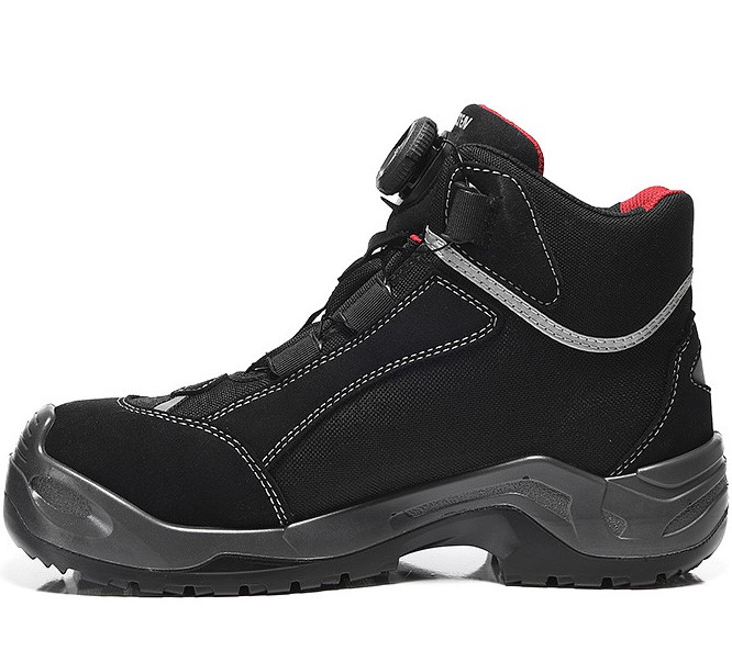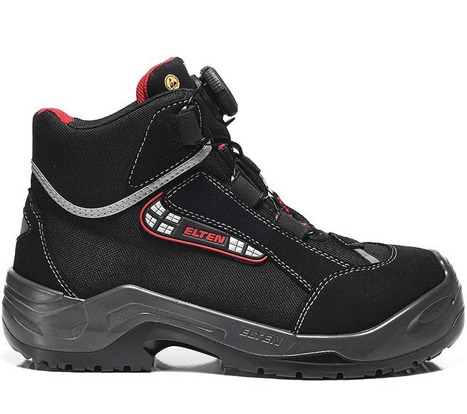 Ein komfortables Highlight im Job: der SANDER Boa ESD S3, ein Sicherheitsstiefel aus der ELTEN Safeguard Serie mit ESD-Ausstattung, beziehbar in den Größen 38 bis 48. Durch die Verwendung von CORDURA und Fashmo ist der Sicherheitsschuh strapazierfähig, pegeleicht, weist Schmutz und Wasser ab und bleibt gleichzeitig atmungsaktiv. Das BOA-Verschlusssystem macht den S3 Sicherheitsschuh von ELTEN zu etwas Besonderem unter den Sicherheitsschuhen. Aufgrund des metallfreien Durchtrittschutzes und der Aluminiumkappe werden Gefahren verlässlich abgewehrt, und die grobstollige Sohle sorgt für guten Halt auf unsicheren Untergründen. Der Sicherheitsstiefel SANDER BOA ESD S3 ist nach DGUV Regel 112-191 für orthopädische Anpassungen zertiziert. Der Stiefel ist speziell für kräftige Füße geeignet, da er eine entsprechende Passform besitzt.