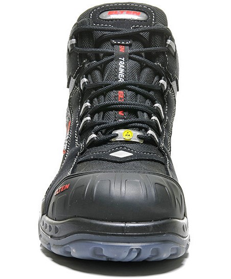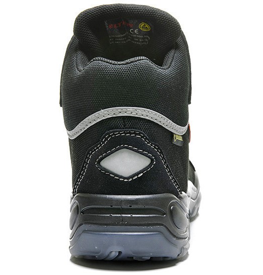 Der SANDER PRO GTX ESD S3, ein Sicherheitsstiefel aus der ELTEN TRAINERS Serie, in ESDAusführung. Erhältlich in den Größen 38 bis 47. Die Modelle der TRAINERS Serie überzeugen durch ein modernes Design und ein geringes Gewicht. Der Sicherheitsschuh ist metall- und lederfrei. Das Obermaterial aus der Polyamidmikrofaser FashmoTM, ist schnell trocknend und sehr pegeleicht. Das Material ist zusätzlich sehr reißfest und atmungsaktiv. Ein integriertes Reexmaterial bietet Sicherheit durch erhöhte Sichtbarkeit, auch bei schlechtem Wetter. Durch Kunststoffzehenkappe und Durchtrittschutz werden die Füße zuverlässig geschützt. Die TRAINERS Laufsohle bietet gute Rutschsicherheit auf verschiedenen Untergründen und wurde farblich an den Schaft angepasst. Eine GORE-TEX® Klimamembran vermeidet, dass Wasser in den Schuh eintritt ist aber zusätzlich atmungsaktiv.