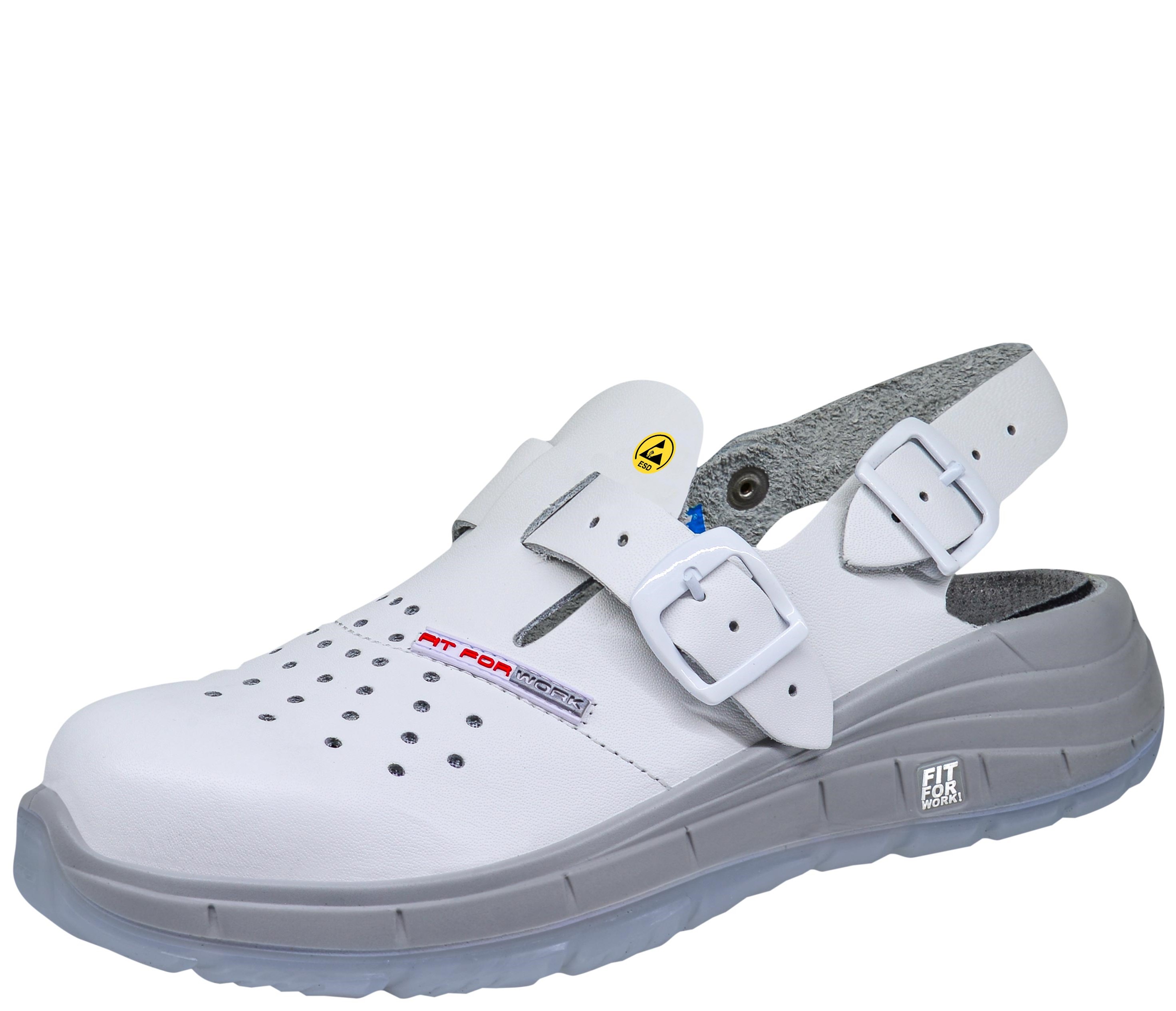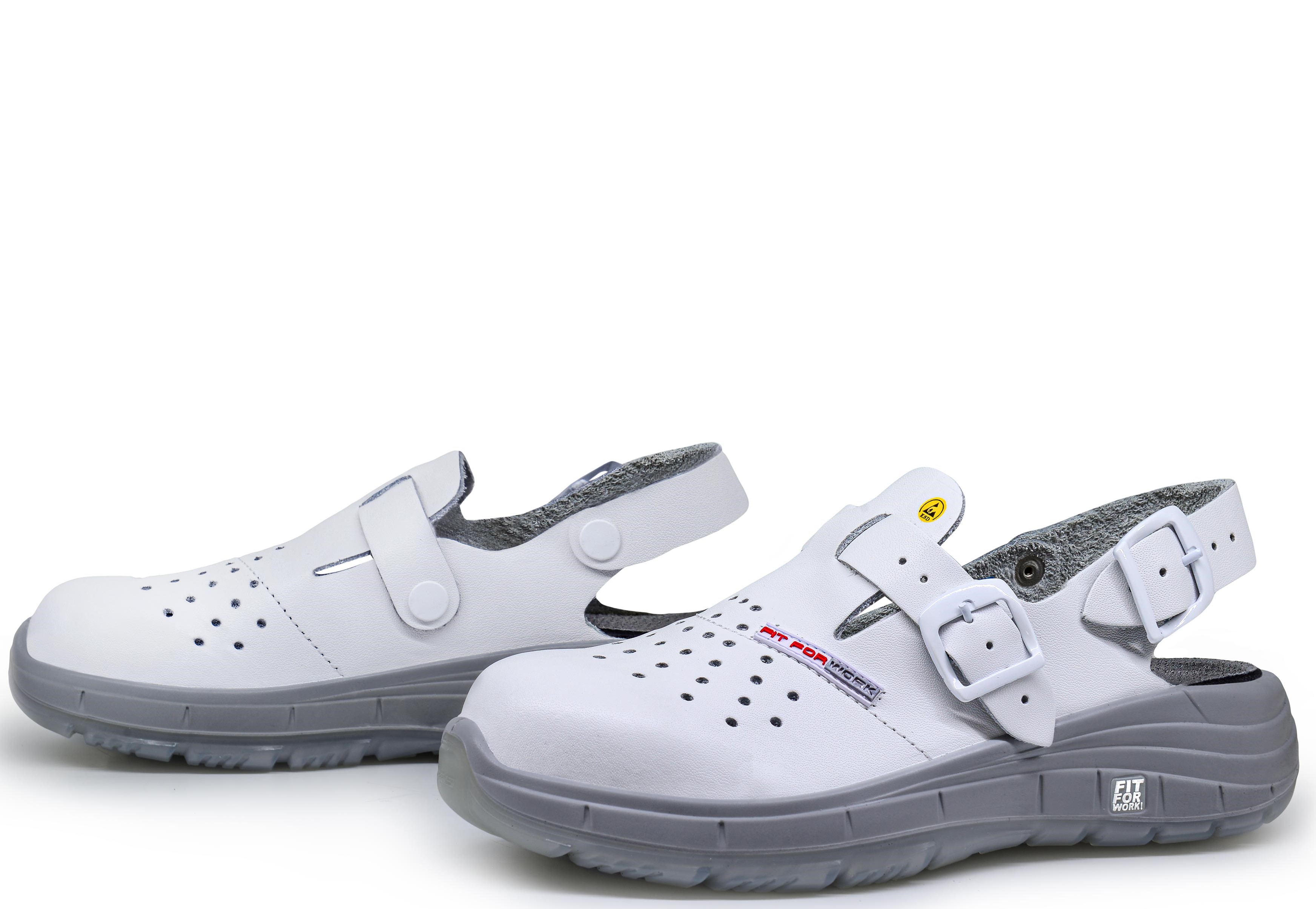 - Fußschutz: Antistatisch (A), Zehenschutzkappe, rutschhemmend (SRC = SRA + SRB), atmungsaktiv, schockabsorbierend (E), kraftstoffbeständig (ORO), antibakteriell, auswechselbare Fußbetteinlage