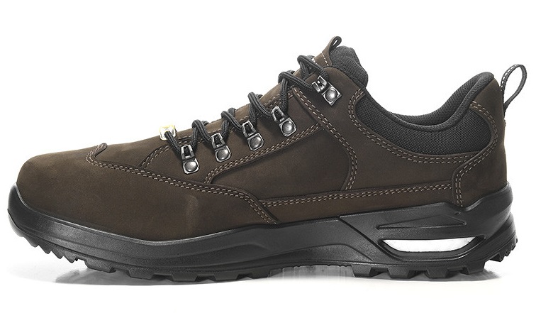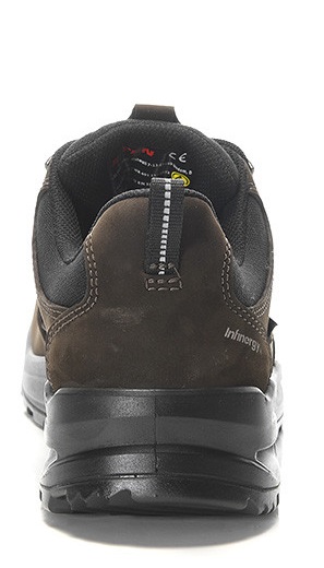 Nicht nur für Paket- und sonstige Warenzusteller, deren Füße dem Dauerlauf auf harten Gehsteigen standhalten müssen, sondern für alle, die auch nach Feierabend einen gut gedämpften Schuh zu schätzen wissen: Unser RONAN XXF GTX brown Low ESD O2 WR CI, garantiert wasserdicht dank GORE-TEX Performance Comfort Footwear, extrem rutschhemmend aufgrund seiner PU/PU Sohle WELLMAXX FLEX und obendrein aus elegantem, braunem, hydrophobiertem Nubukleder. Für die Dämpfung sorgt hier Infinergy® von BASF. Der Partikelschaum kommt in allen unseren WELLMAXX-Schuhen zum Einsatz, was ungemein leichtes Laufgefühl und zusätzliche Energieschübe bedeutet. Den Schwung, den diese Schuhe beim Tragen verursachen, kann man prima mit in den Feierabend nehmen. Was zum Beispiel bei längeren Spaziergängen mit dem Hund nach Feierabend ideal ist. Zu bestellen ist der ESD-fähige Berufsschuh mit Freizeitappeal im Größengang 35 bis 48.
