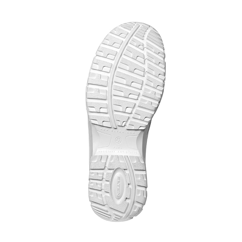 Ideal für alle Weißbereiche: der ESD-fähige Sicherheitsschuh WHITE Loop Low ESD S2 aus der ELTEN WHITE Serie. Die hydrophobierte Mikrofaser des Obermaterials ist besonders leicht, formbeständig und einfach zu reinigen. Ergonomisch geformte Stahlkappen schützen vor Stoßeinwirkungen und Druck; die SAFETY-GRIP Laufsohle ist rutschfest und bietet auch auf nassen Untergründen besten Halt. Tragekomfort wird beim ELTEN Sicherheitsschuh White Loop großgeschrieben: er besitzt nicht nur eine sehr gute Passform, sondern ist zusätzlich nach DGUV Regel 112-191 für individuelle orthopädische Anpassungen zertiziert. Er ist lieferbar in den Größen 39 bis 50.