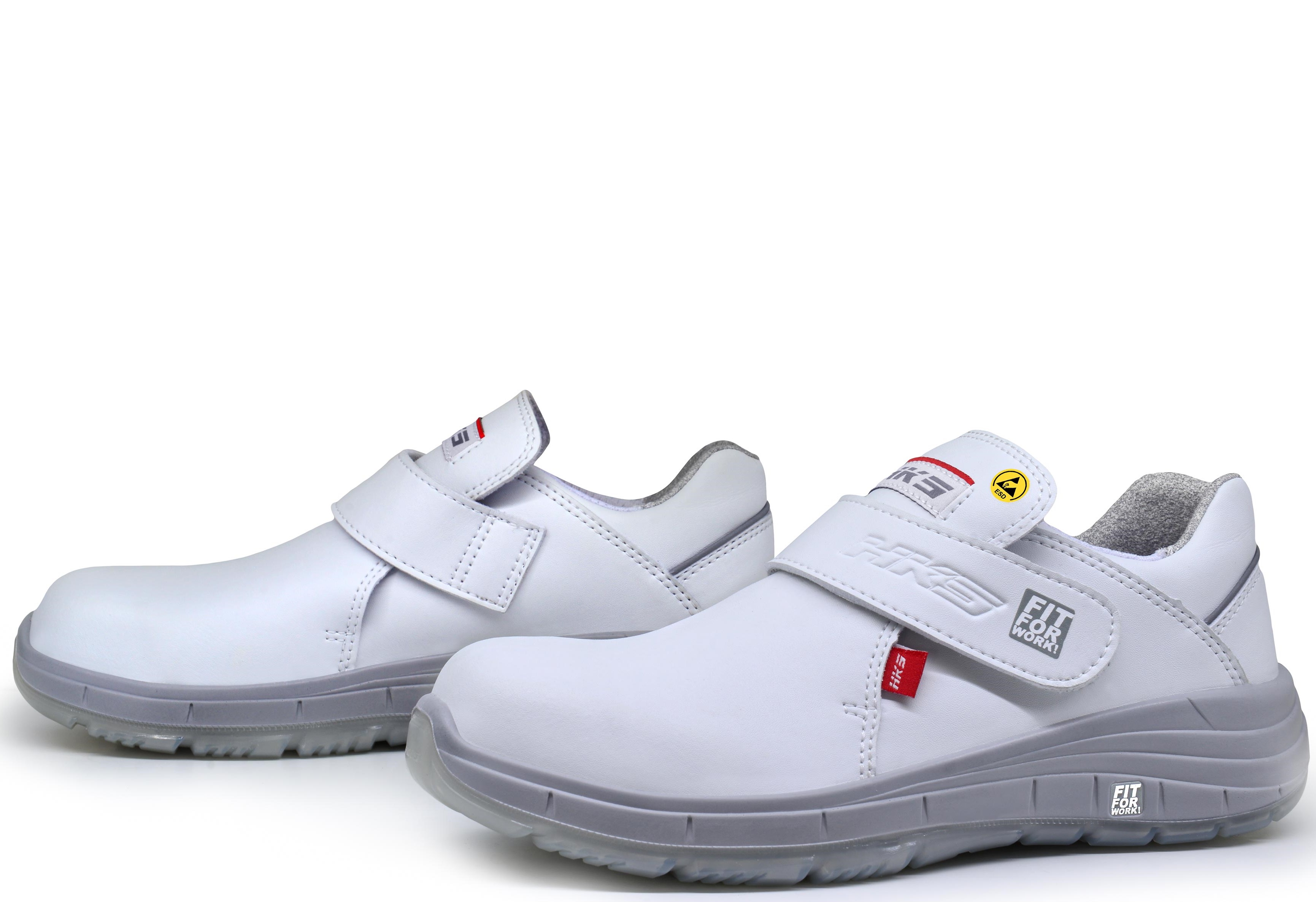 Die HKS Running-Concept White Line Sicherheitsschuhe sind aus Mikrofaser-Obermaterial gefertigt und besonders für den Einsatz in hygienisch sensiblen Bereichen geeignet.